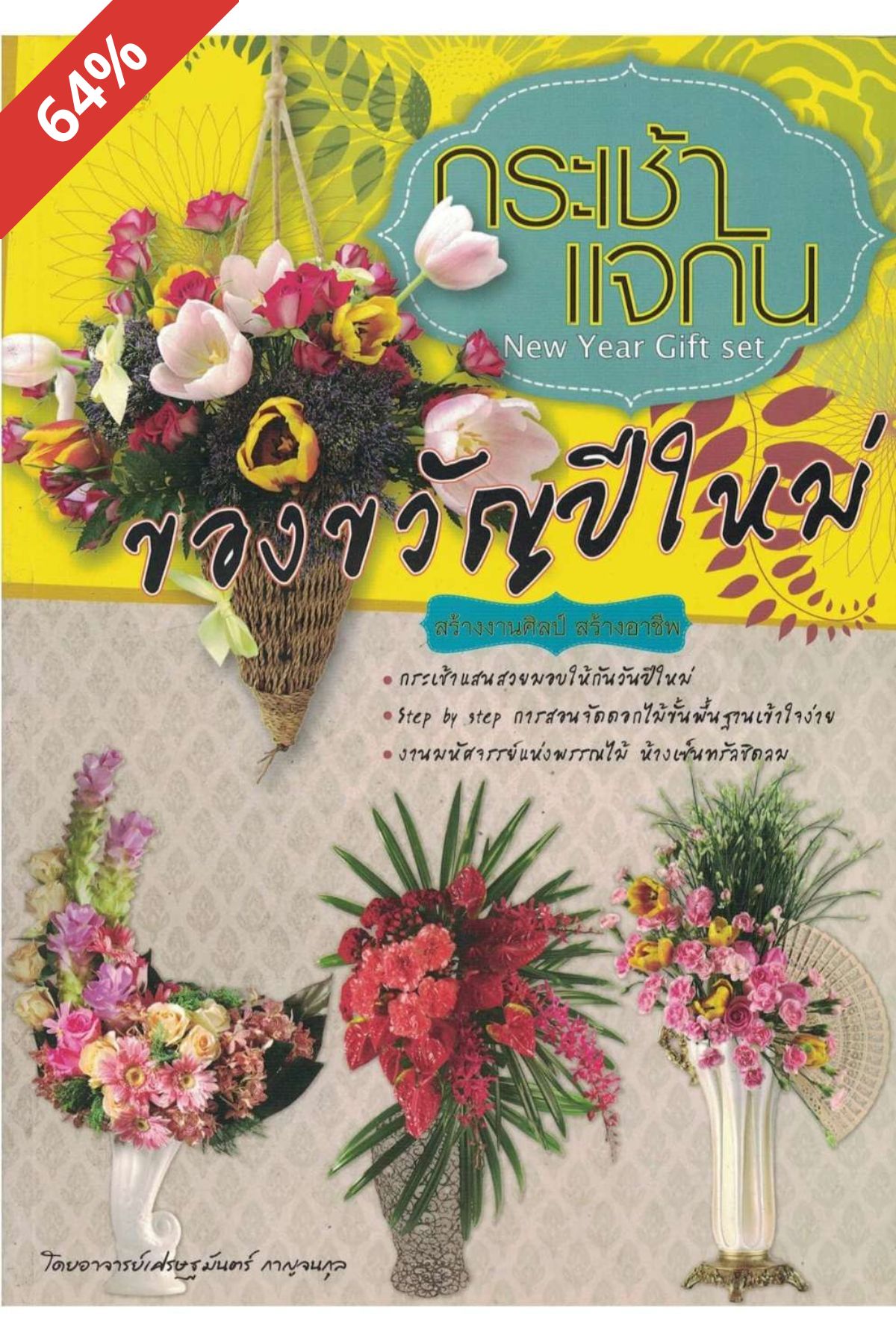 กระเช้า แจกัน ของขวัญปีใหม่ หนังสือเล่มนี้กล่าวถึงดอกไม่ที่จัดขึ้นเพื่อโอกาสสำคัญ ไม่เจาะจงเฉพาะวันปีใหม่เท่านั้น วันรับปริญญา วันเกิด วันฉลองตำแหน่ง ฯลฯ ก็สามารถจัดแจกันมอบให้ได้ทั้งนั้น ภายในเล่มมีเทคนิควิธีการที่ท่านสามารถนำไปใช้ได้จริง หากฝึกฝีมือจัดดอกไม้บ่อย ๆ จนชำนาญ ก็อาจนำไปใช้จัดเป็นอาชีพเสริมได้อีกทาง เนื้อหาด้านในสอนวิธีทำกันแบบ Step by Step แบบเข้าใจง่ายอีกด้วย