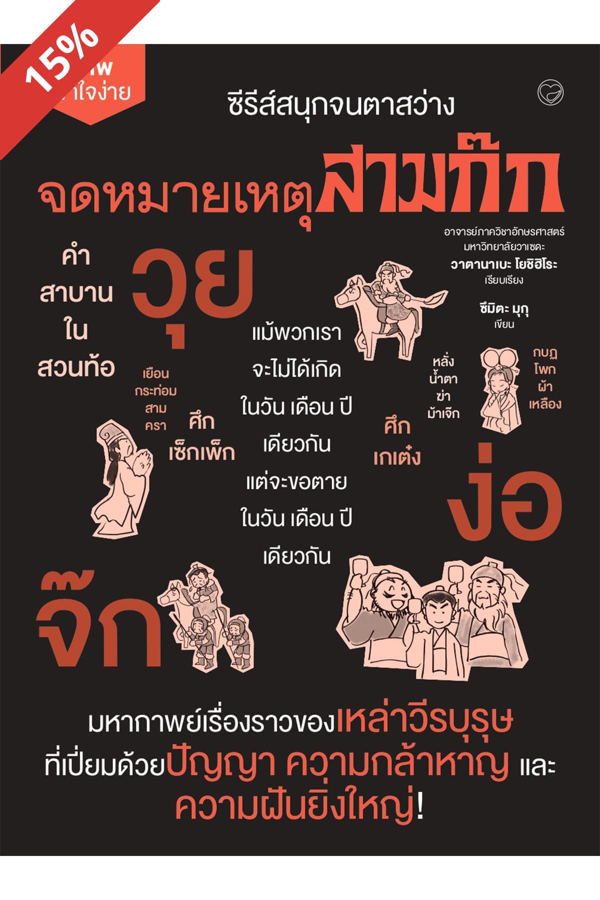พาผู้อ่านย้อนสู่ยุคปลายราชวงศ์ฮั่น เมื่อราชสำนักอ่อนแอ ขุนนางและแม่ทัพต่างแย่งชิงอำนาจ เปิดฉากด้วยความปั่นป่วนจากเหล่าขันทีและความเสื่อมโทรมของราชวงศ์ ก่อนจะเข้าสู่ศึกใหญ่ระหว่างอ้วนเสี้ยว โจโฉ เล่าปี่ ซุนกวน และขงเบ้ง เรื่องราวถูกเล่าผ่านศึกสำคัญ เช่น ศึกกัวต๋อ ศึกเซ็กเพ็ก ศึกอิเหลง และการรบระหว่างสามฝ่าย หนังสือไม่ได้หยุดที่การเล่าเหตุการณ์ แต่ยังแทรกการอธิบายว่าเหตุใดแต่ละศึกจึงชนะหรือแพ้ และตัวละครสำคัญคิดตัดสินใจเช่นไร