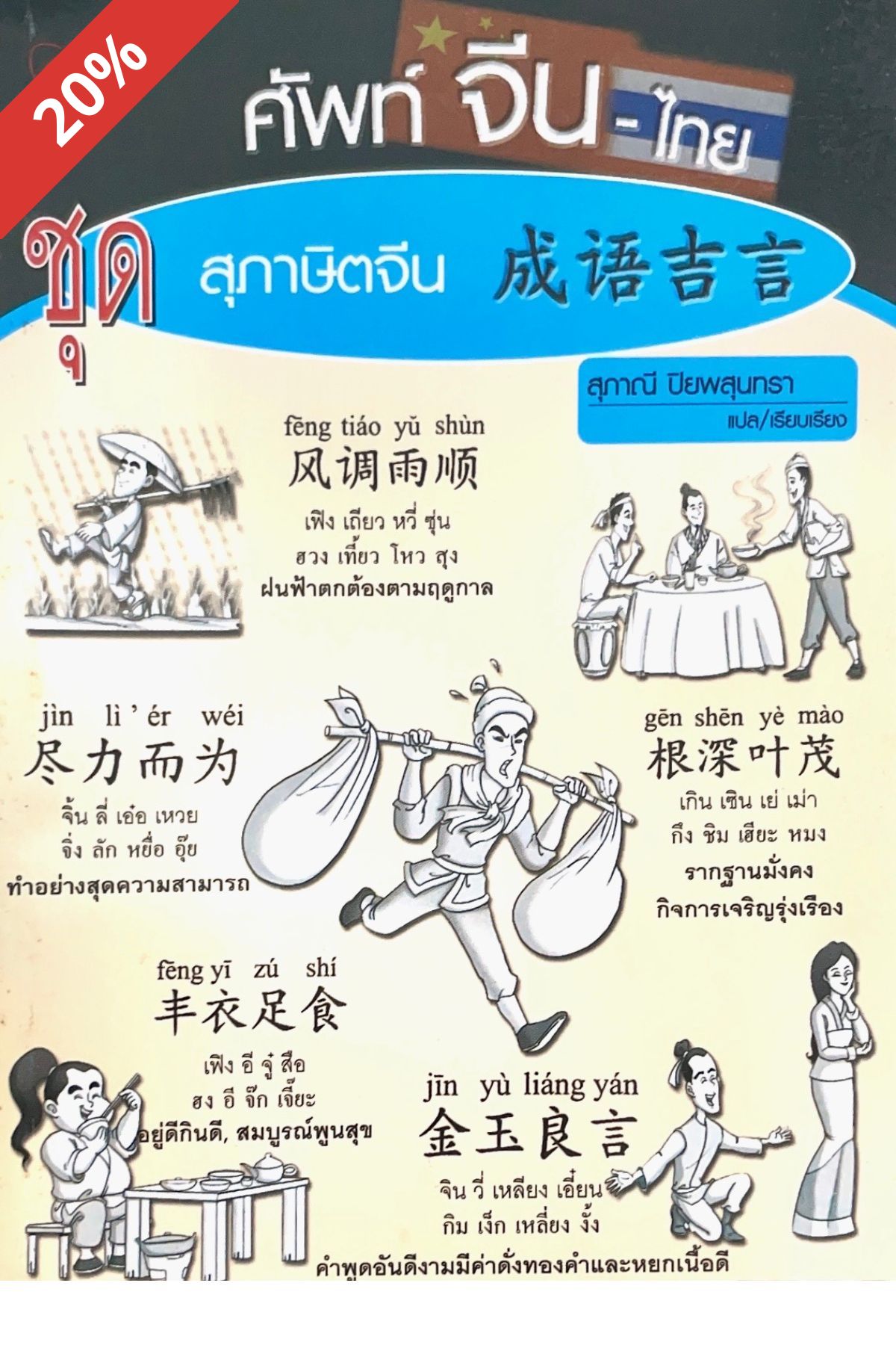 เป็นตำราเสริมทักษะการเรียนภาษาจีน ทั้งจีนกลาง แต้จิ๋ว โดยใช้ภาษาไทย และพินอิน ในการกำกับการออกเสียงเพื่อง่ายต่อการจดจำ ทั้งยังสามารถเรียนรู้สุภาษิตและคำคมที่มีความหมาย คติเตือนใจลึกซึ้ง เป็นการเรียนรู้วัฒนธรรมที่เก่าแก่ดีงามของจีนด้วย