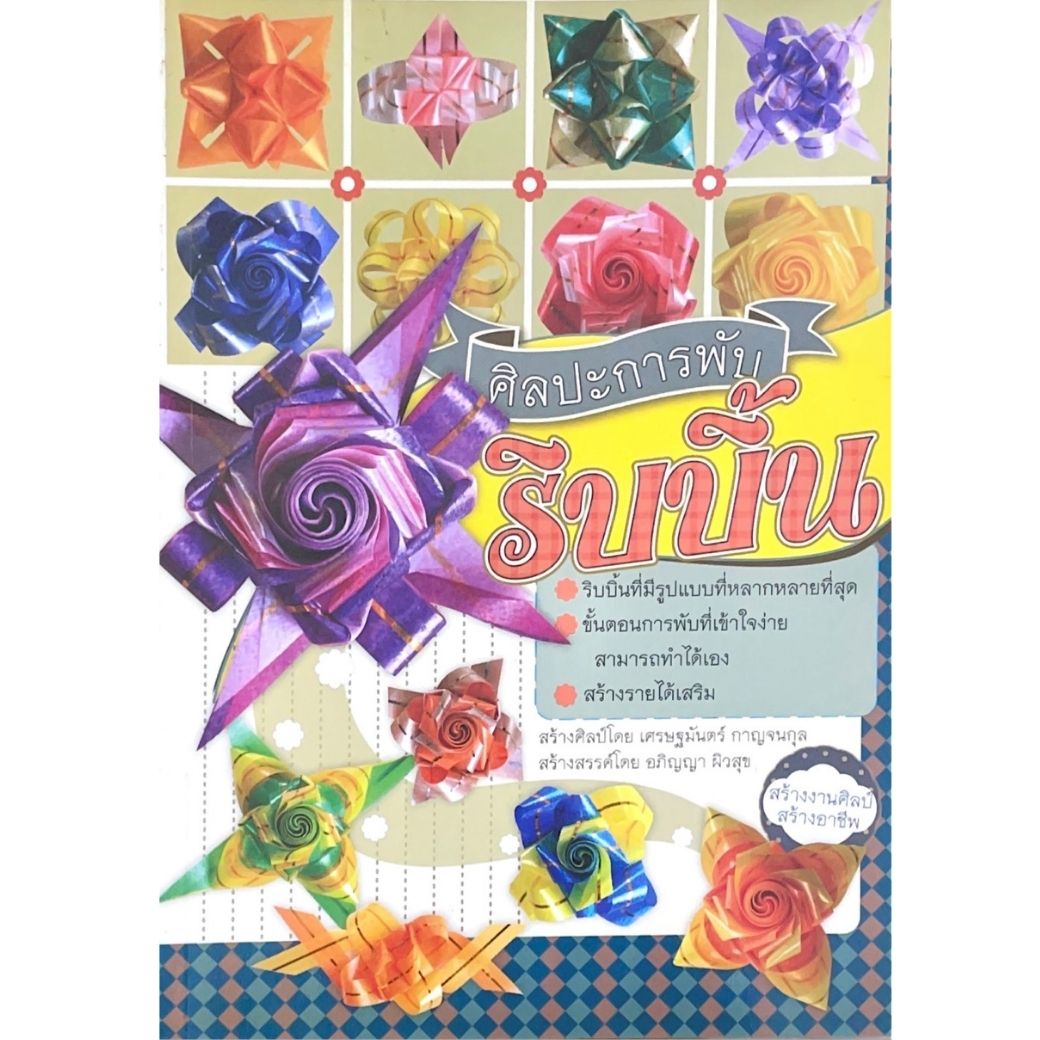 ศิลปะการพับริบบิ้น เล่มนี้มีวิธีการสอนพับริบบิ้นที่มีรูปแบบที่หลากหลายที่สุด ขั้นตอนการพับที่เข้าใจง่ายด้วย ภาพประกอบคำบรรยายแบบ Step by Step สามารถนำไปประยุกต์ใช้ในชีวิตประจำวัน หรือสร้างรายได้เสริม