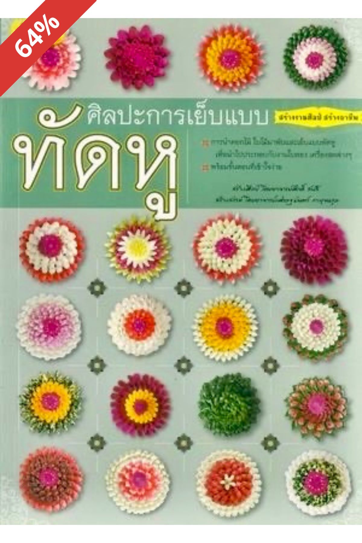 พบกับศิลปะการเย็บเเบบทัดหู เป็นงานที่ละเอียดประณีต ที่มีความงดงาม สามารถนำมาประกอบบายศรีต่างๆ งานเเต่งงาน ทำพานขันหมาก งานบวช เเละงานมงคลต่างๆ ในเล่มได้ให้วิธีการอย่างเป็นลำดับขั้นตอน พร้อมภาพประกอบสวยงาม ซึ่งคุณสามารถนำไปประยุกต์ประดิษฐ์เป็นงานชิ้นใหม่ในแบบที่คุณต้องการได้อีกด้วย