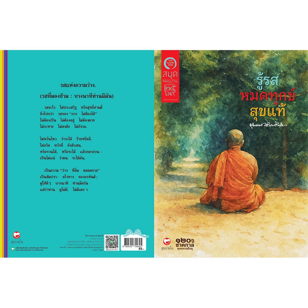 "สมุดแผนงาน รู้รส หมดทุกข์ สุขแท้” เป็นหน้ากระดาษถนอมสายตา จำนวน 40 หน้า พิมพ์ด้วยหมึก Soy Ink มีปฏิทินปี 2569 และวันหยุดสำคัญ ใช้จดบันทึกแผนงานประจำปี โครงการประจำปี แผนงานประจำเดือน แนะนำสถานที่ปฏิบัติธรรมทั่วไทย โครงการปฏิบัติธรรมที่สวนโมกข์ และกิจกรรมหอจดหมายเหตุพุทธทาส อินทปัญโญ ปฏิทินปี 2569 หมายเลขโทรศัพท์สำคัญ ข้อมูลผู้ติดต่อ ข้อมูลส่วนตัว พร้อมธรรมคำกลอนพุทธทาสให้ธรรมะใกล้ตัว ใกล้ใจ หยิบใช้ได้ทันที “อิ่มใจผู้ให้ สุขใจผู้รับ” เปี่ยมไปด้วย